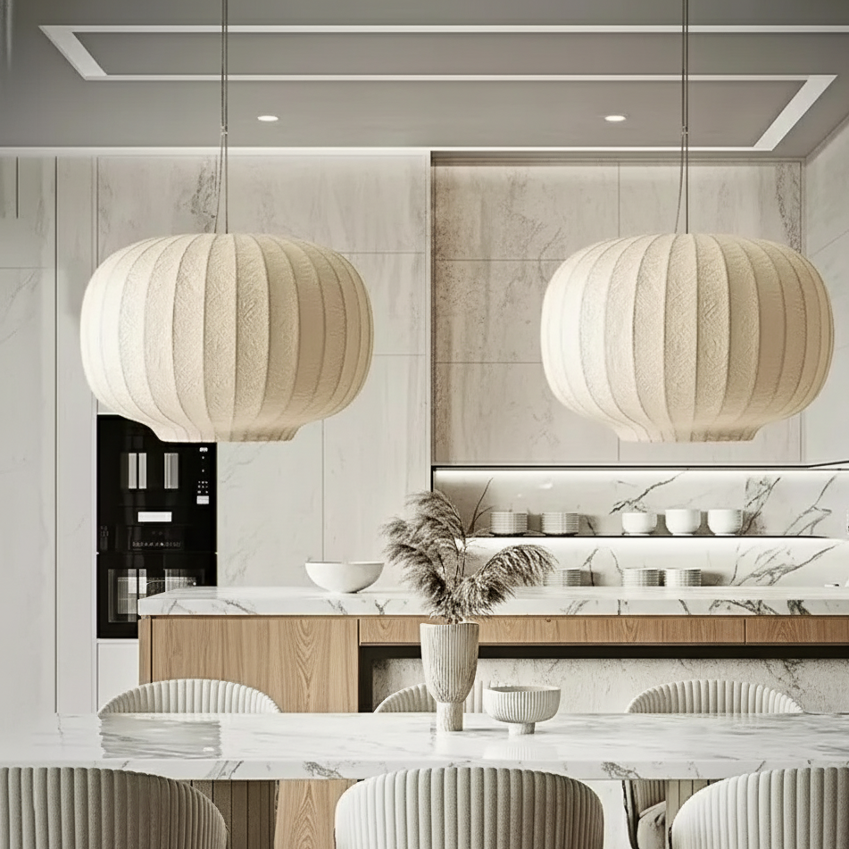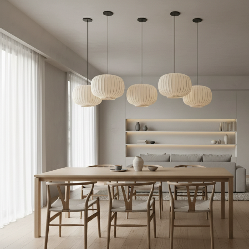 Aetheris combineert Scandinavische eenvoud met verre-oosterse inspiratie – een hanglamp van zijde die elke ruimte vult met zacht, sfeervol licht.