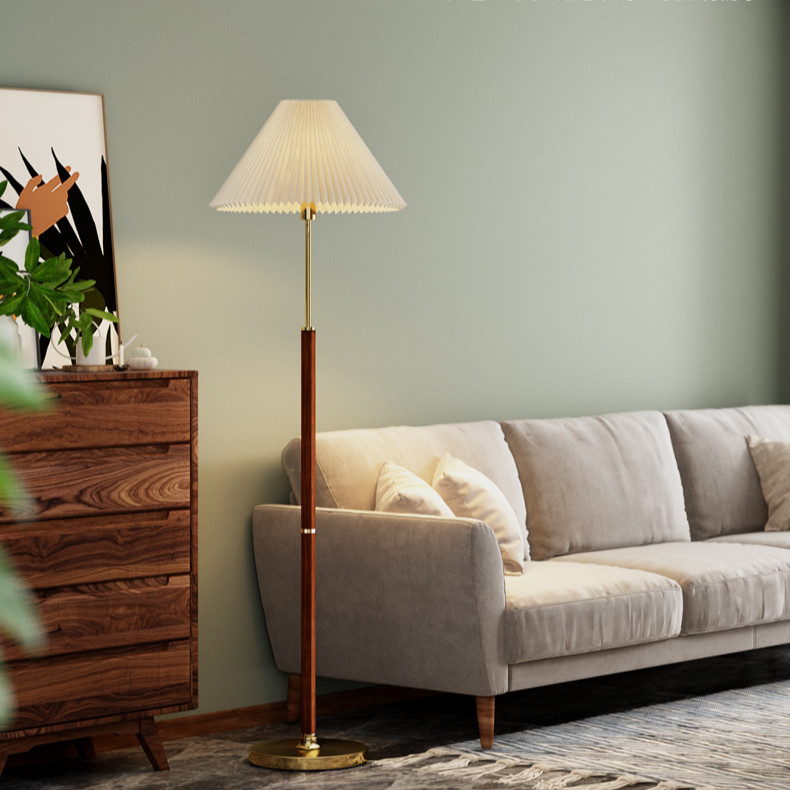 Japanse Wabi-Sabi vloerlamp | Handgemaakt | Stoffen lampenkap & houten voet