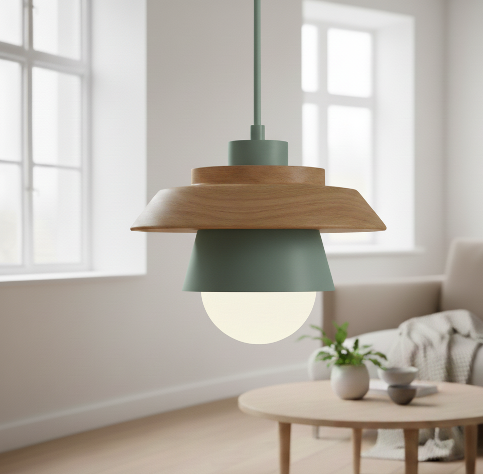 ScandiGlow Pendellamp – Scandinavische LED hanglamp van hout & metaal in macaron-ontwerp