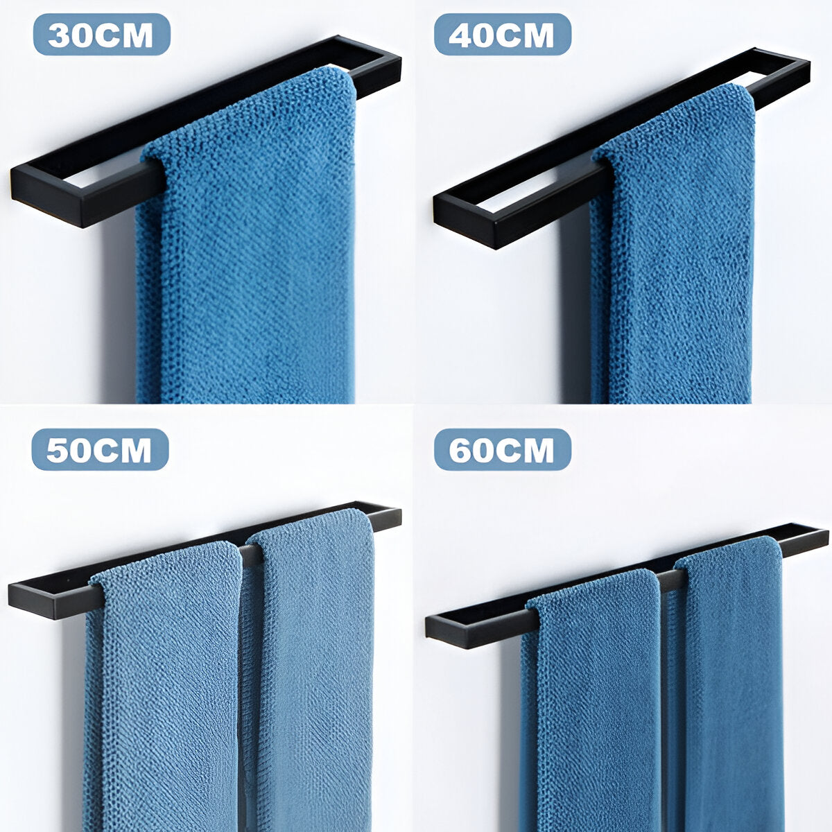 UniBlack handdoekhouder roestvrij staal – wandmontage handdoekstang 20cm & 40cm